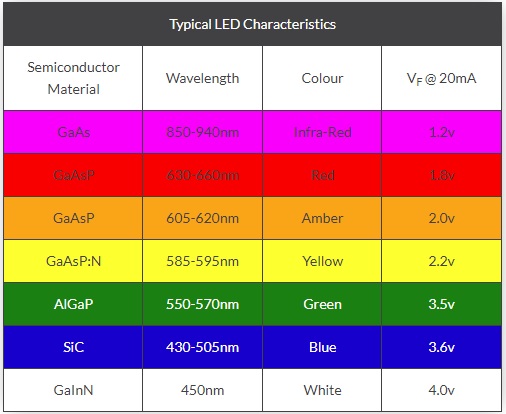 The above figure is a typical led connection where .Rs is the Series resistance ,Vs is the source voltage,Vf is the forward voltage of the LED(also referred to as the "voltage drop") ,If is the safe current through the LED