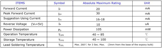 From the above table the maximum peak current for an lED is 30 mA and maximum Continuous current is 20 mA. So we have to set the LED current to a lower value as prefered in the table we can choose a value in between 16-18 mA