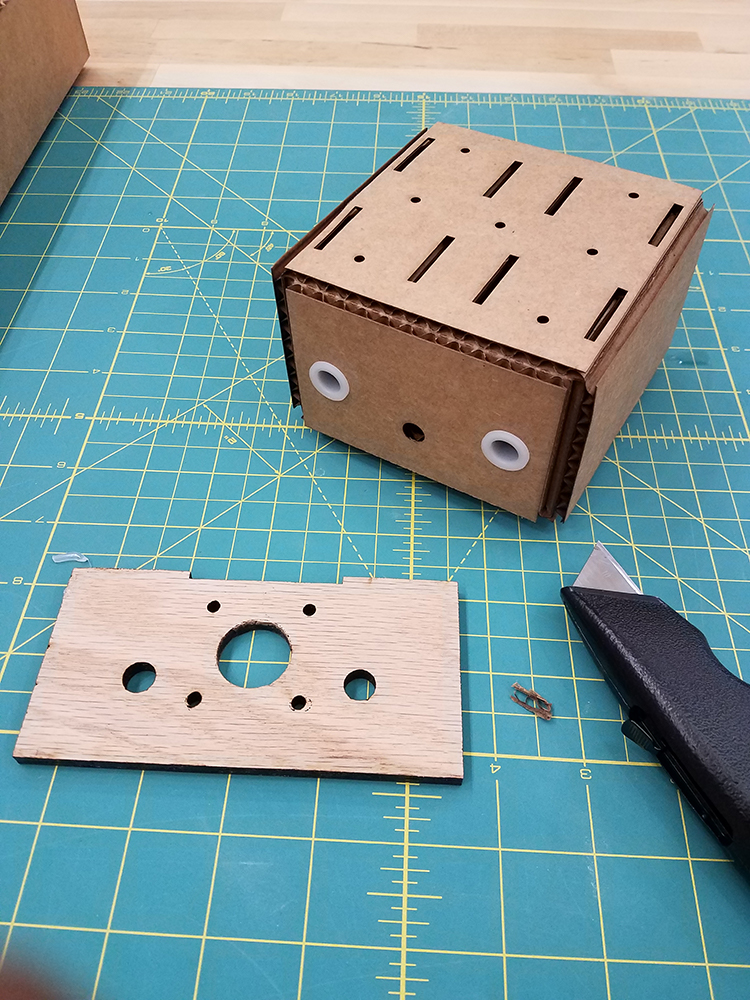 Paul met me at work in my Fab Lab. He brought over some cardboard sheets from LCCC, along with some component kits and step motors. It turns out our other partner, Cory, was in Costa Rica for some time, and will only be around the last week.