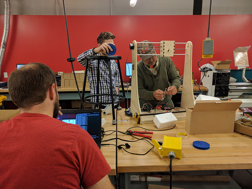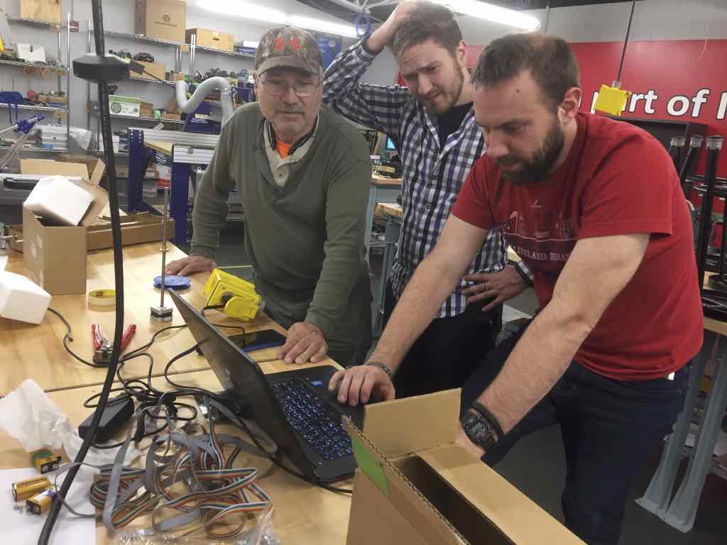Once we hooked everything up, Cory had worked out most of the bugs we got the machine to function under program control. Corey had a little Python programming experience and Paul worked beside him to finish modifying the Gestalt software leftover from LCCC 2016. I felt rather useless during this stage and the coversations they had sounded very foreign to me.