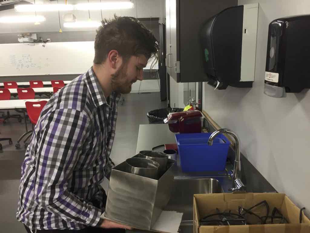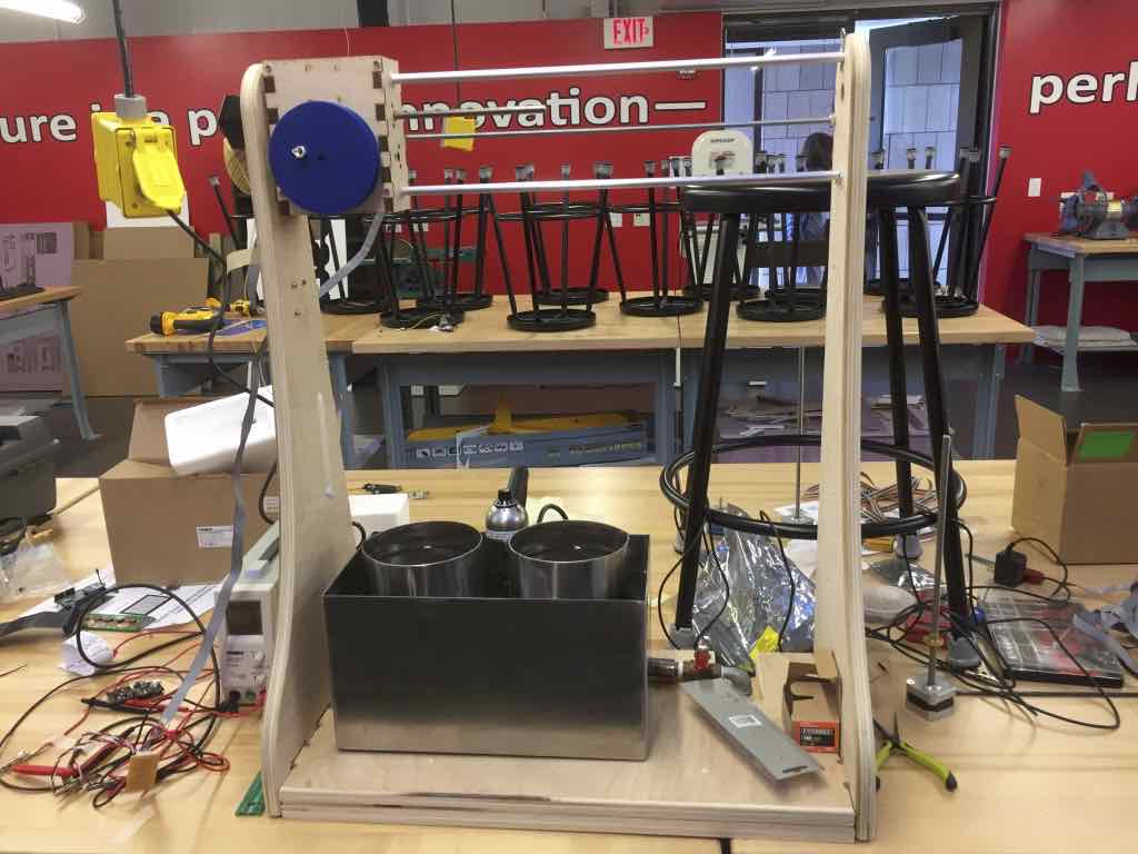 Right after this week's lecture, we met with the Scott Zitek, our local instructor. Me and Paul o'Neil were shown cardboard stages that have been used in the past, and reviewed some of the previous group projects that had been made at LCCC. Scott had mentioned in earlier weeks that that we should start thinking about what we wanted to build for the group project. He constantly reminded us to keep things as simple as possible, and dont go overboard with what you want the machine to do; we only have a couple weeks. Once we agreed that we will design a candle machine, Scott provided us with a stainless steel vessel with 2 "buckets" inside of a larger reservoir, which we could easily repurpose to hold the molten wax.