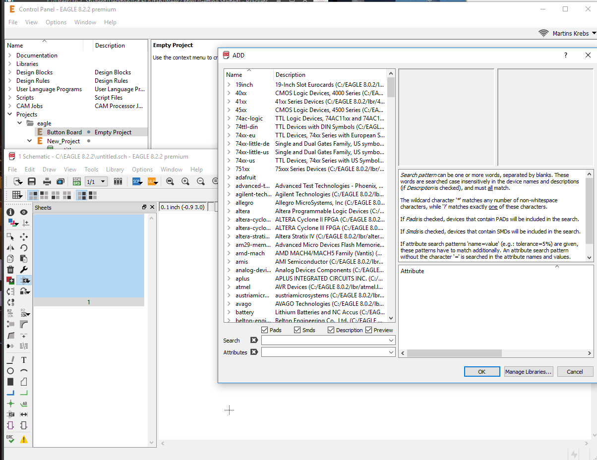To get started on a board, we will start in the schematic view, and begin by placing all of the components we need.