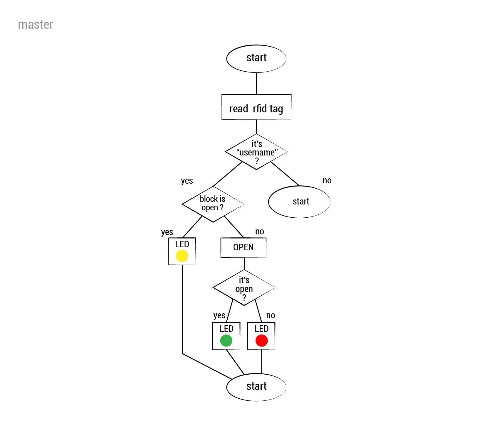 //code for slave: for open and closed drawers with a master board #include//for i2c #include #define drawer_pin 5 //digital input metti il numero del pin #define servo_pin 10 //pwm servo pin #define lock_pin A0 //analog input pin hall sensor #define address_i2c 8 //address bus #define lockthreshold 20 //hall sensor analogue reading threshold #define closepos 20 //servo position closing (block inserted) #define openpos 160 //posizione servo opening (block not inserted) Servo moveLock; // create servo object to control a servo char todo = 'a'; void setup() { Wire.begin(address_i2c); // join i2c bus with address #8 Wire.onReceive(receiveEvent); // register event Wire.onRequest (requestEvent); Serial.begin(115200); // start serial for output Serial.println("Start..."); pinMode (drawer_pin, INPUT); //drawer pin (switch digital input) moveLock.attach(servo_pin); // attaches the servo on pin 10 to the servo object if (drawer() && isLock()) { //initial check to see if it is closed closed(); //move servo motor } else { opened(); //move servo motor todo = 'a'; } } void loop() { switch (todo) { case 'a': //drawer is open and must be closed if (drawer ()) { if (isLock ()) { closed(); todo = '0'; // nothing } } break; case 'b': //The drawer has just opened because the master has told him to do it. and must not close up if ( isLock() == false ) { //do it if the block has been removed todo = 'a'; //make sure that you check whether it should close or not } break; default: break; } delay(100); } //he does it when something is sent to him from the master void receiveEvent(int howMany) { String cmd = ""; //buffer while (Wire.available()) { //if there is at least one byte to read he performs. - 0 lockthreshold); //the more I'm getting closer, the more it increases } //turn servo motor to close void closed () { moveLock.write(closepos); Serial.println("closed"); //write on the serial when it's closing, useful for verification } //turn servo motor to open void opened() { moveLock.write(openpos); Serial.println("opened"); //write on the serial when it's opening, useful for verification } //It's open? if is open: true, if is closed: false bool isOpen () { return (moveLock.read() == openpos);