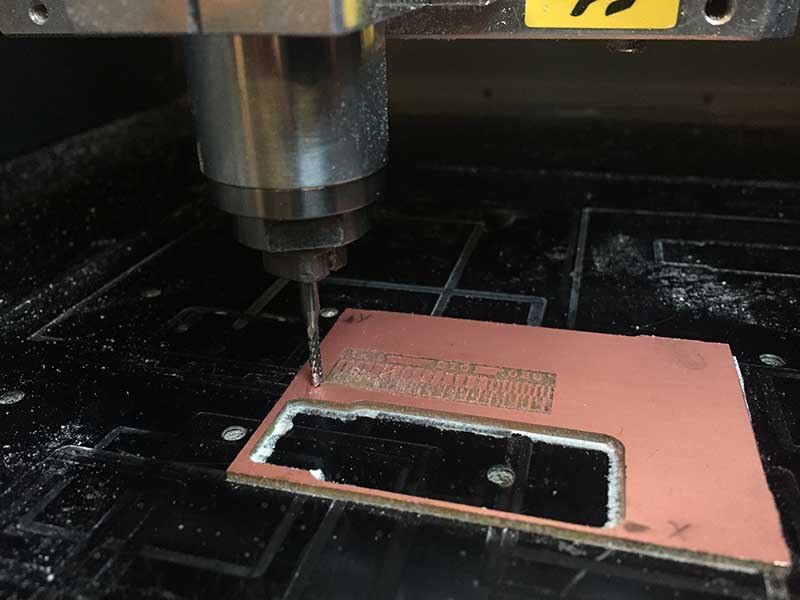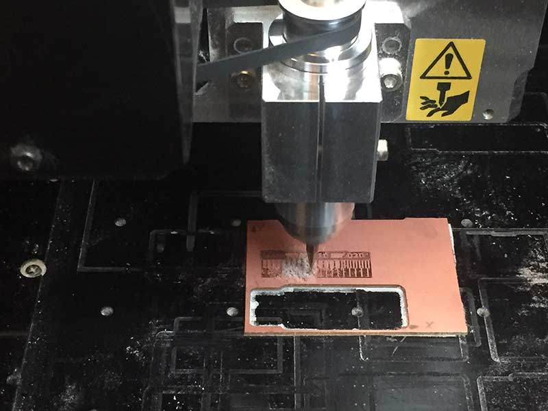 Then I change the milling end and start to set the machine for che cutting file. After this I followed step by step this tutorial for assembling the PCB.