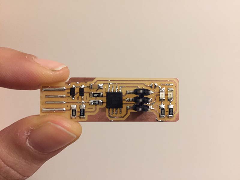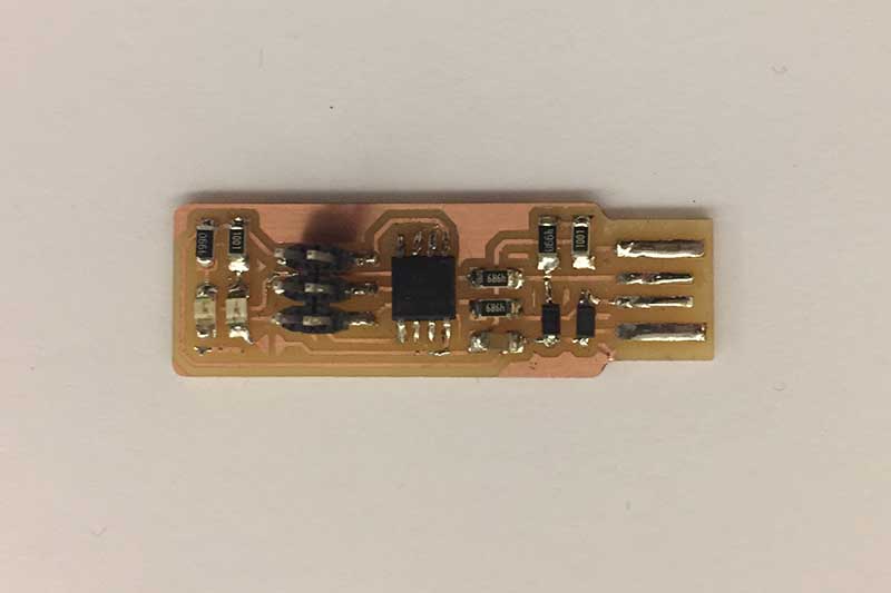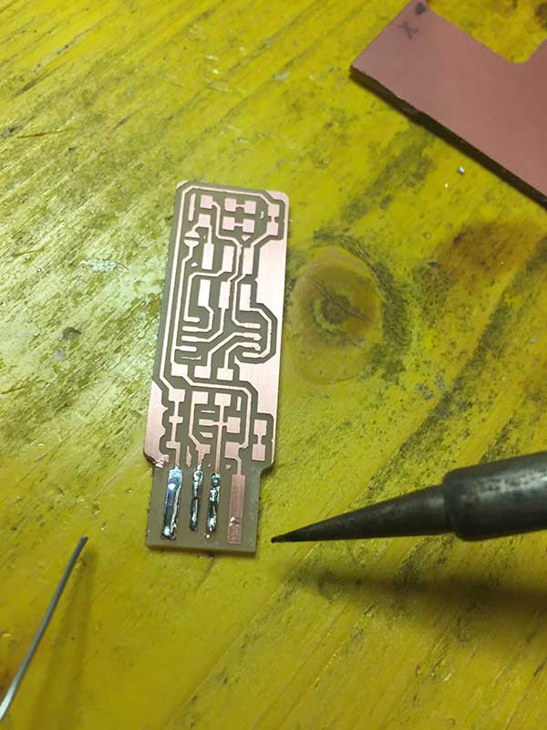 My first solder did not come very well. During programming I resumed the board and reviewed all the solder joints made previously.