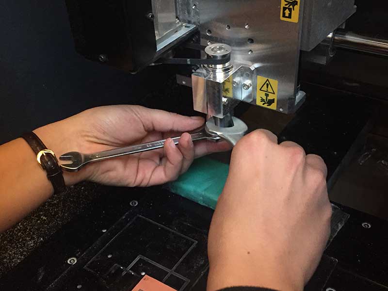 to prevent it from falling on the plane with the tip and breaks. Then, from vPanel we start to move Z axis, very very slowly (on the panel you can check how many step do you move it- each step corresponds to 0,01 mm).