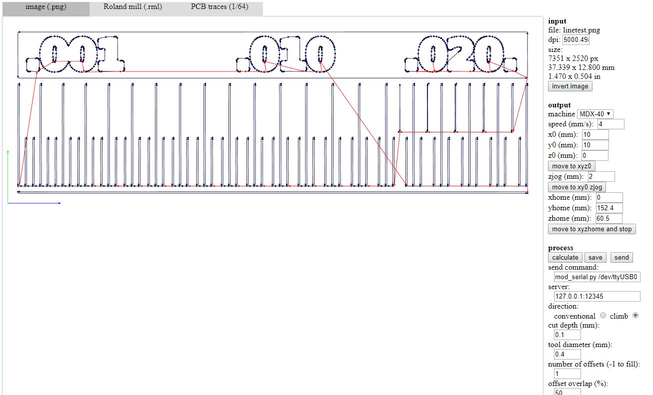 verify that the images have the same size). We started with the traces. We select "Roland Mill" as output format, and "PBC traces 1/64" as process.