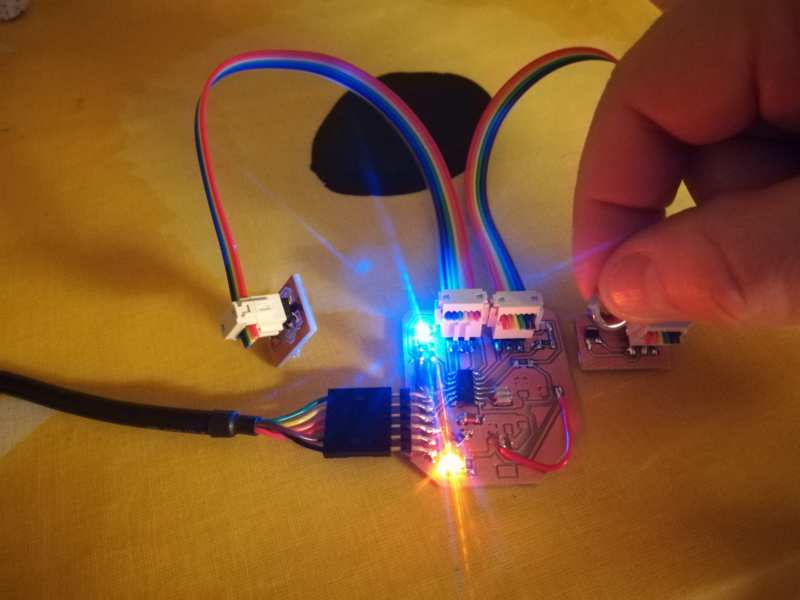 - I have programmed the ATtiny44A to get analog data from the HAll effect sensors and actuate over two different LEDs