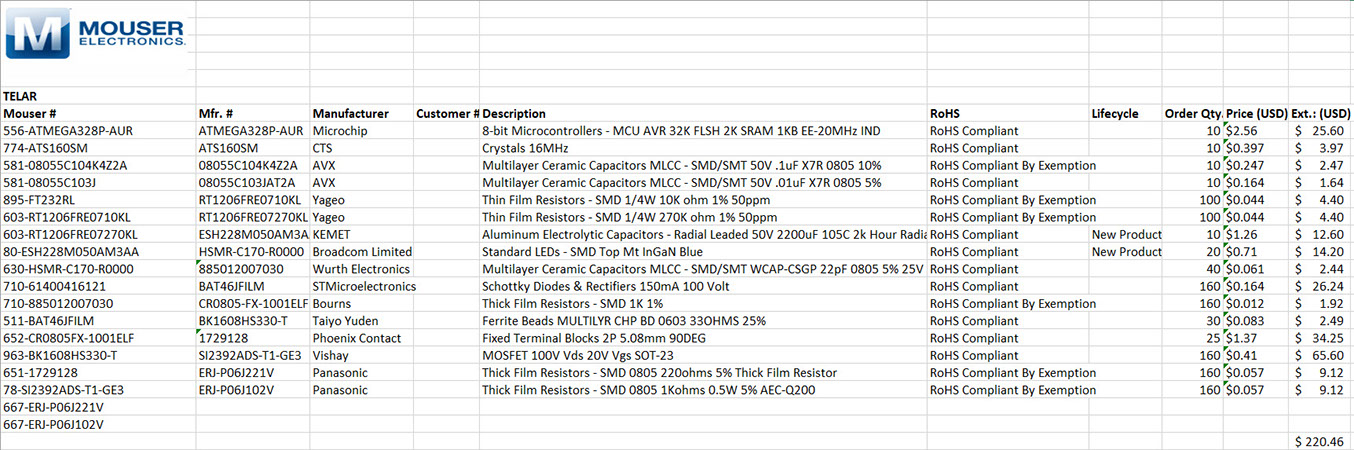 This is the component list, the provider was MOUSER electronics, you can click on the image below to acces the Excel list.