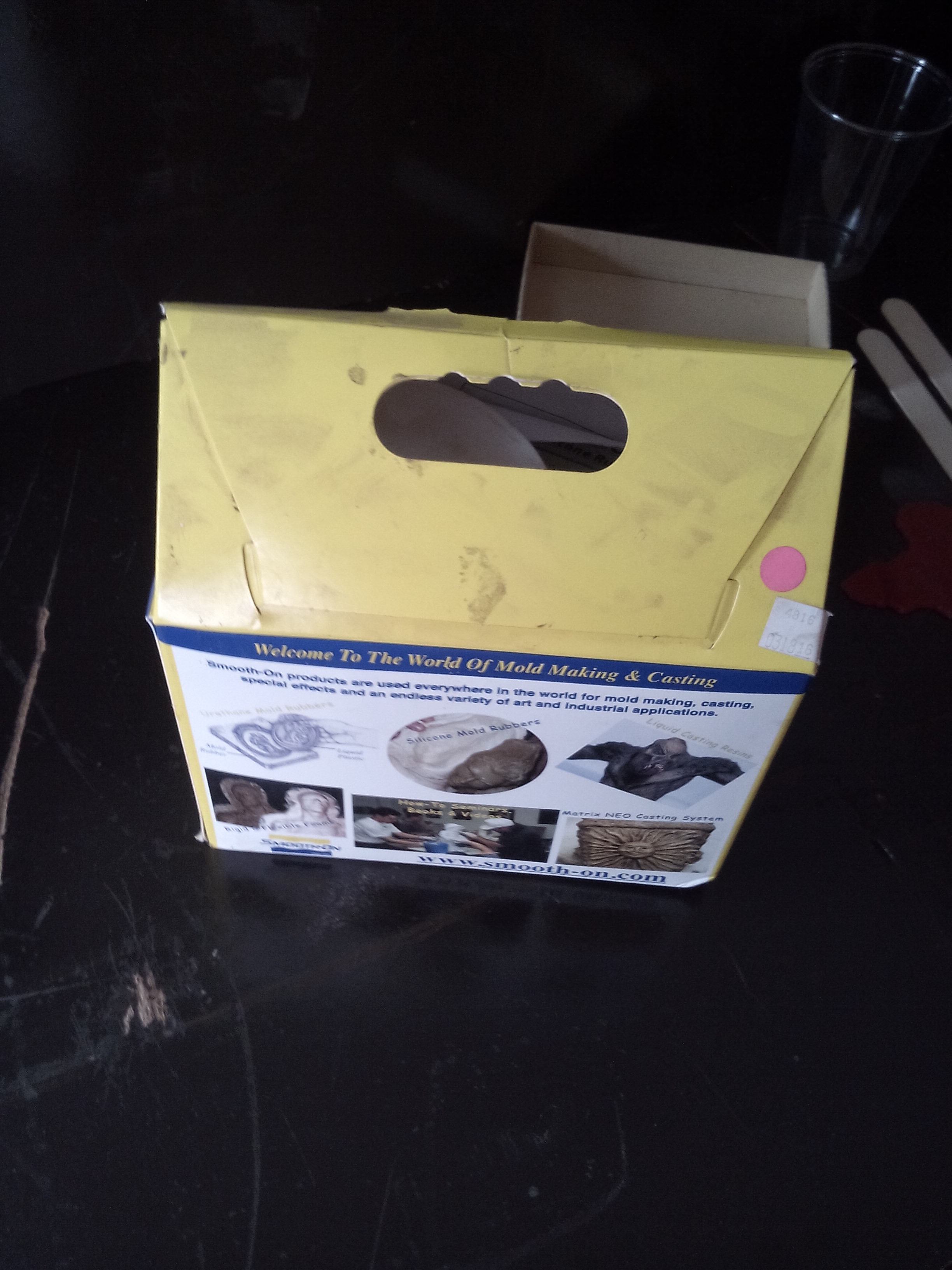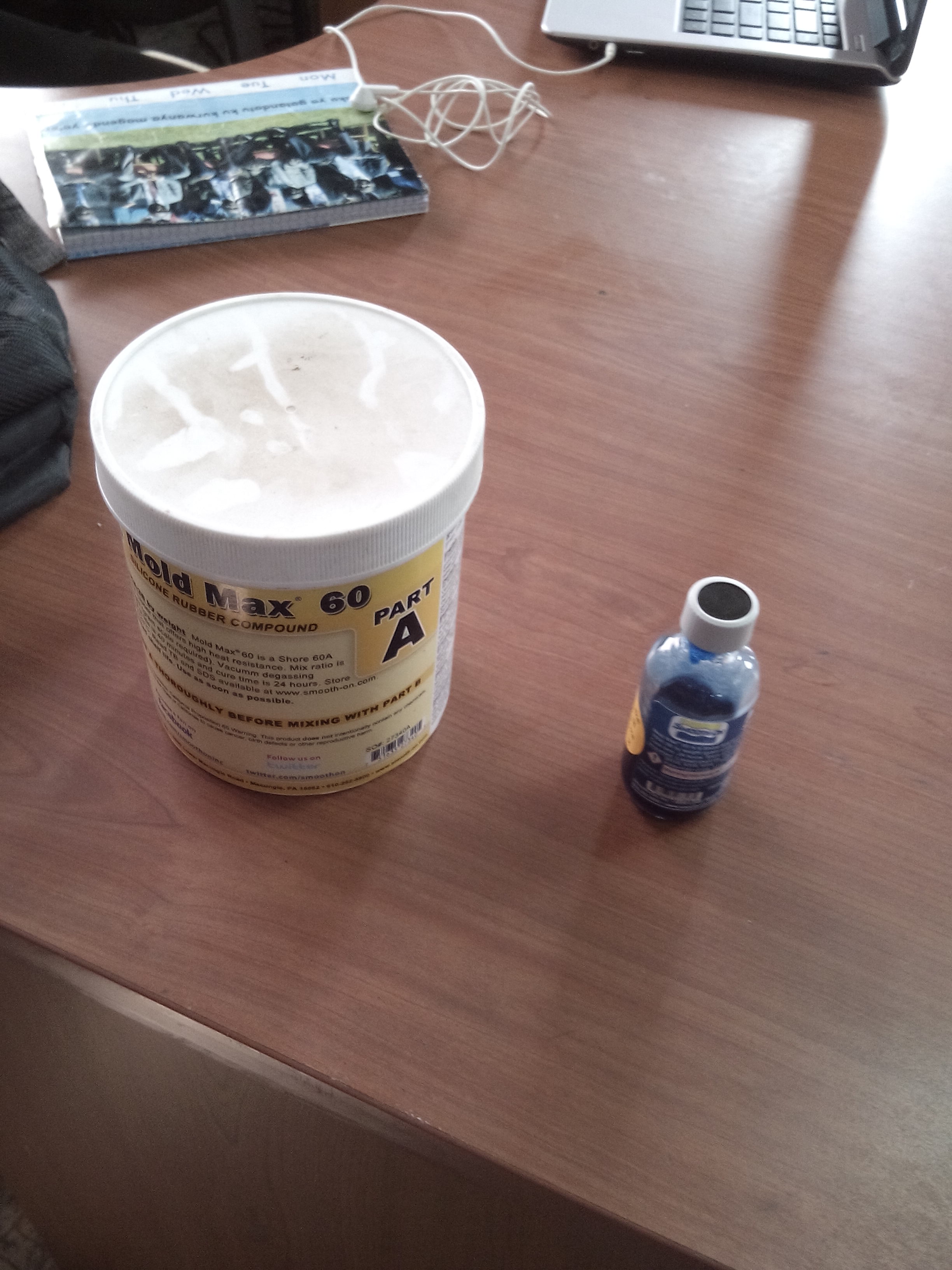 Molding or moulding is the process of manufacturing by shaping liquid or pliable raw material using a rigid frame called a mold or matrix. This itself may have been made using a pattern or model of the final object. A mold or mould is a hollowed-out block that is filled with a liquid or pliable material such as plastic, glass, metal, or ceramic raw material.The liquid hardens or sets inside the mold, adopting its shape. A mold is the counterpart to a cast. The very common bi-valve molding process uses two molds, one for each half of the object. Articulated moulds have multiple pieces that come together to form the complete mold, and then disassemble to release the finished casting; they are expensive, but necessary when the casting shape has complex overhangs.Piece-molding uses a number of different molds, each creating a section of a complicated object. This is generally only used for larger and more valuable objects. Here i try to mold an object which is hand by printed in 3D printer and i make casting of it. Before i mold i choose material i use on image below you can see the type of material which is called mold max 65 A&B.