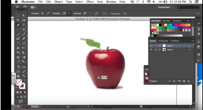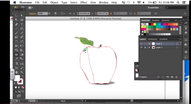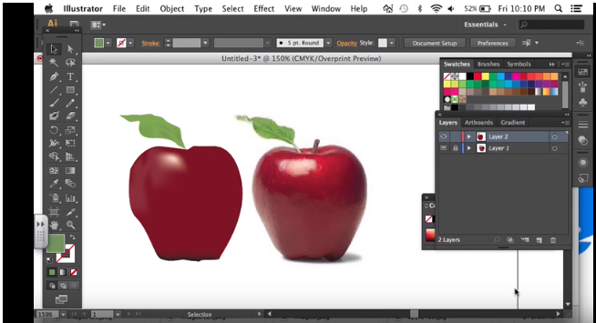 the left apple is 2D of apple by using adobe illustrator software.