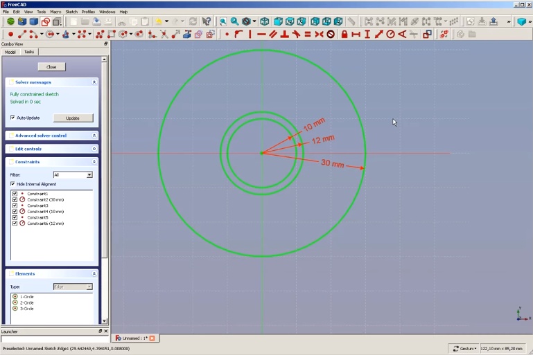 in that shematics we can design the circle line and its define the radius of each circle line then that radius is called the dimensions in free cad that all part that all we need the master skech in our design.