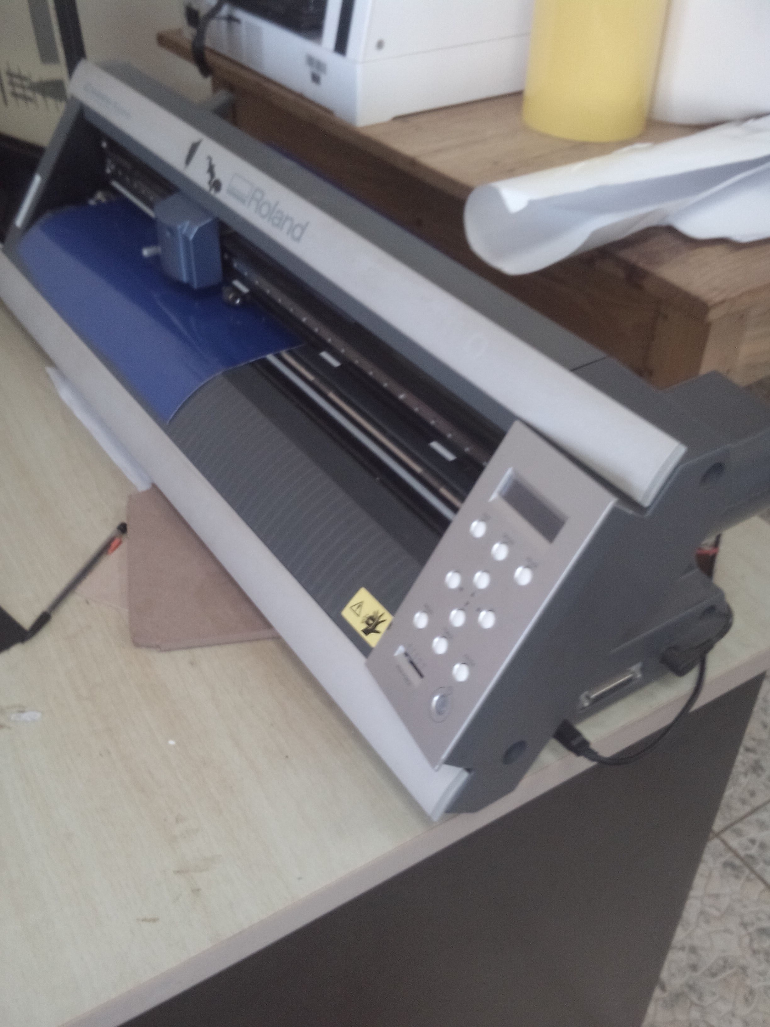 A vinyl cutter is a type of computer-controlled machine. Small vinyl cutters look like computer printers. The computer controls the movement of a sharp blade like a knife. This blade is used to cut out shapes and letters from sheets of thin self-adhesive plastic (vinyl)A vinyl cutter is machine which cut thin flexible sheets like vinyl through the vector path given by the computer or any processor. This is usually used for cutting stickers.In our fablab, the vinyl cutter we have is Roland CAMM-1Servo. .
