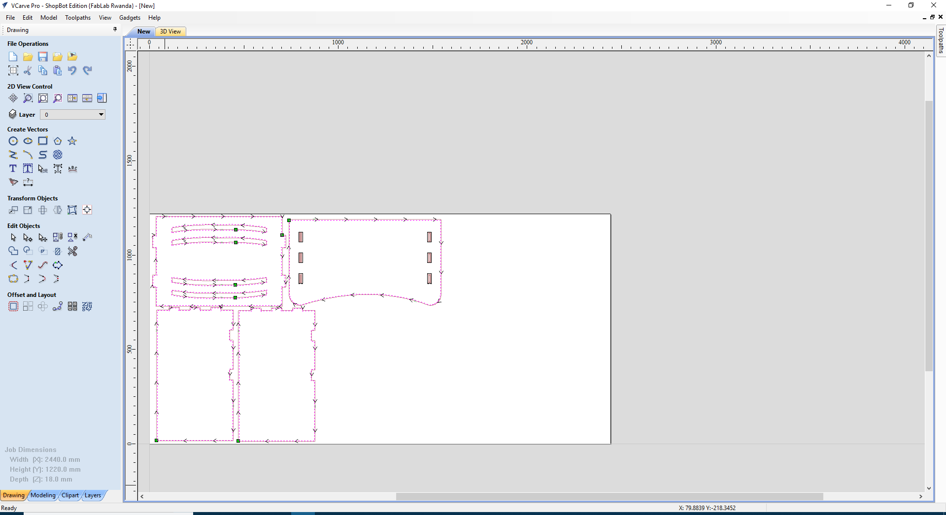 VCarve Pro V9.0 ShopBot Edition provides a powerful but intuitive software solution for cutting parts on a ShopBot CNC Router. There are tools for 2D design and calculation of 2D and 2.5D toolpaths and along with the ability to import and toolpath a single 3D model (STL, OBJ etc.). There is also support to import multiple Vectric Clip Art 3D models (V3M) to create 3D assemblies.