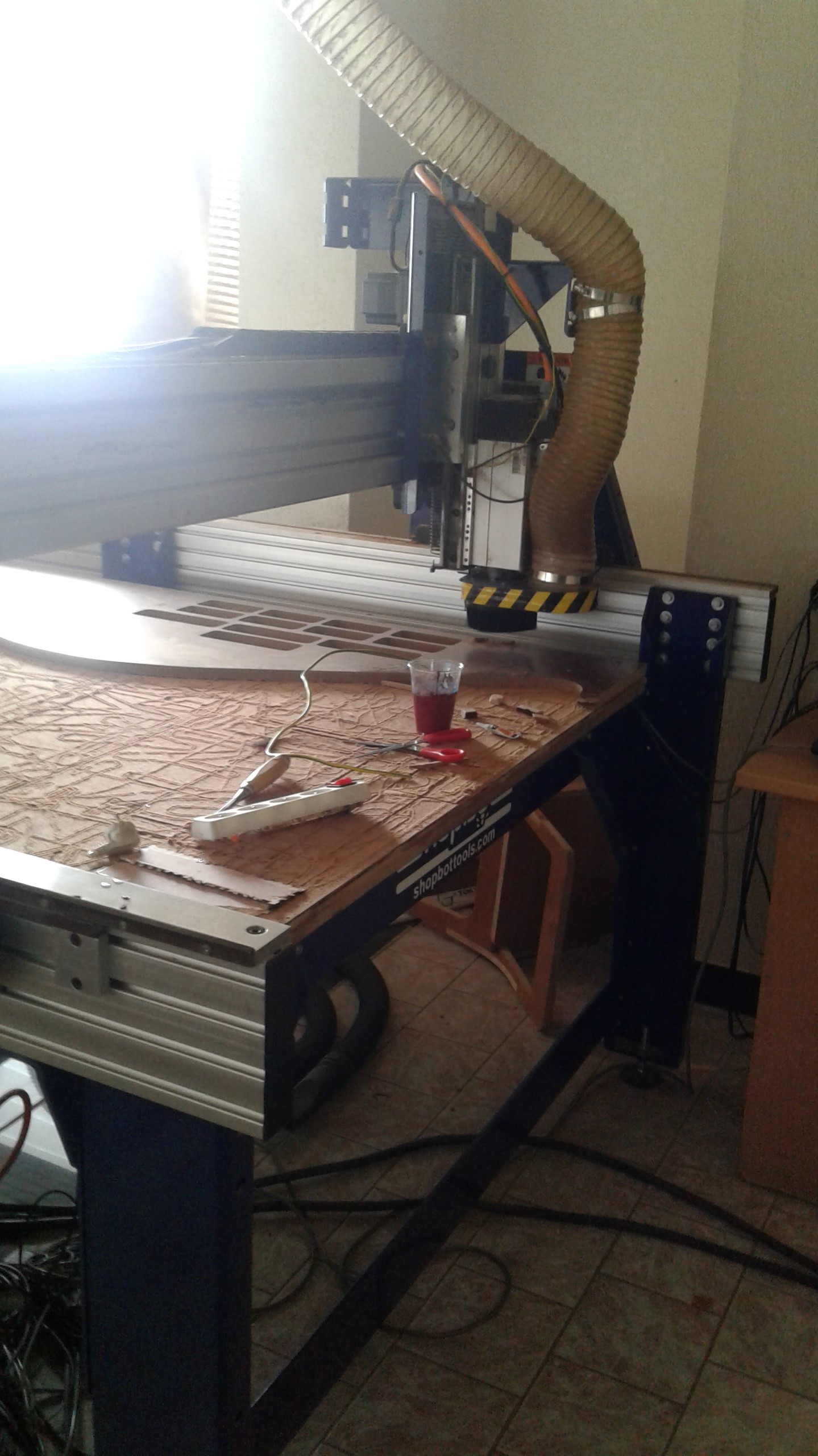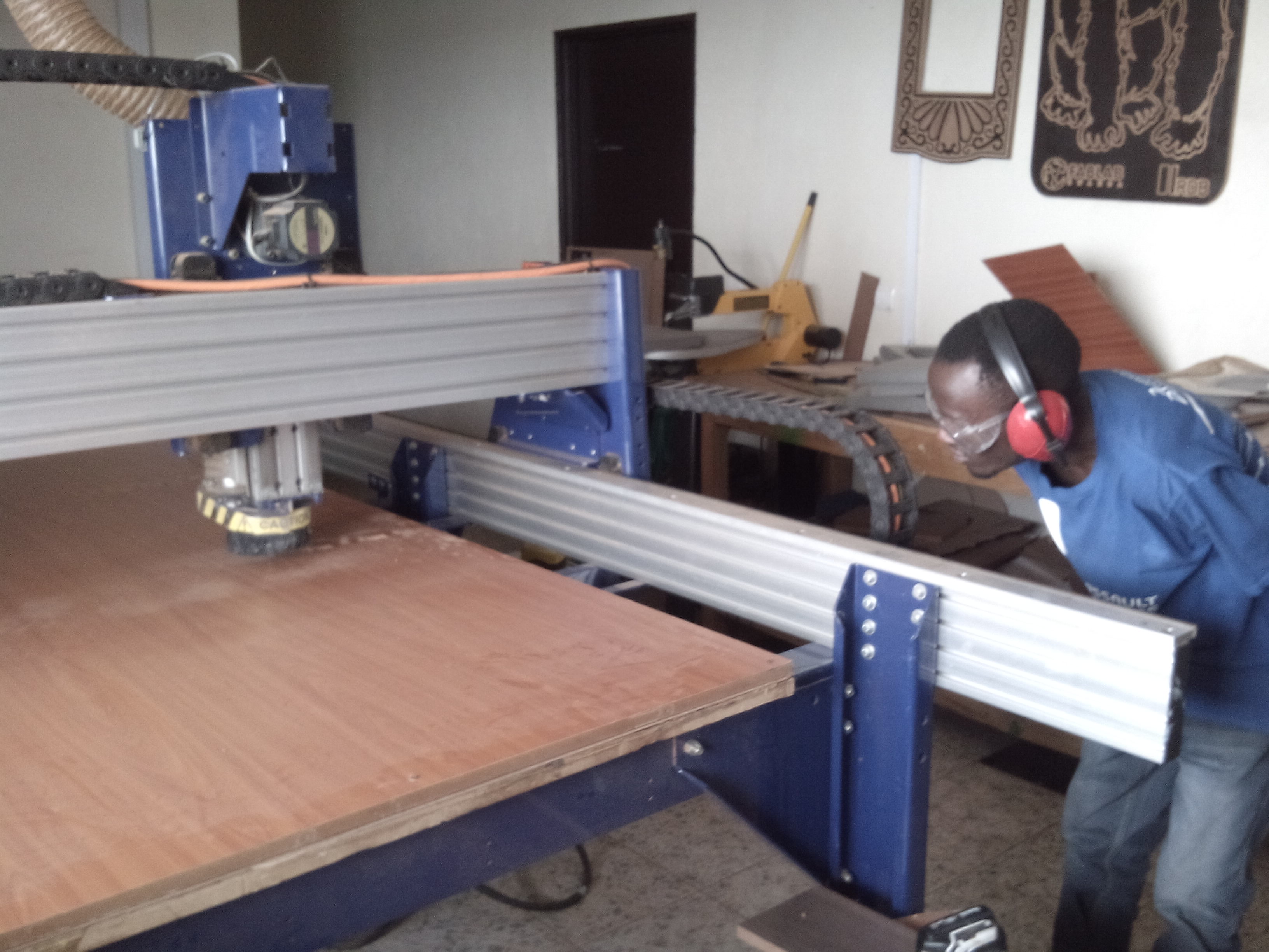 The CNC Router in our Fablab for cutting wood, plywood, etc is shopbot. It has a 8x4 Feet bed size. See our shopbot below:.