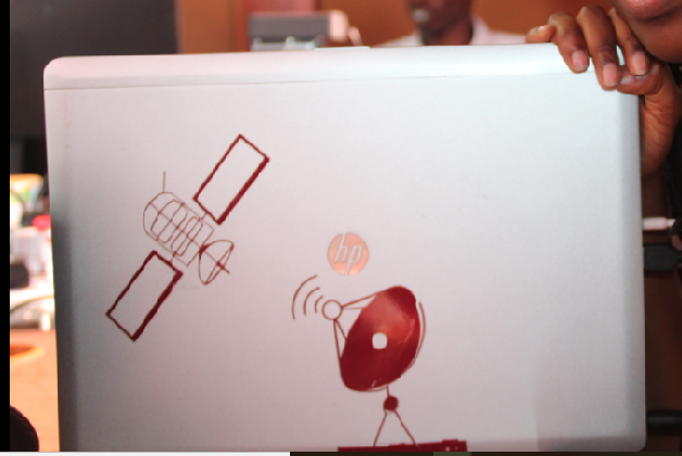 With Vinly cutter I imported 2 images one of a full satellite and one of an antenna that symbolises a groundstation which i downloaded on google,Then I imported them into CutStudio and cut it.After I rubbed it on my computer for it to stick well.