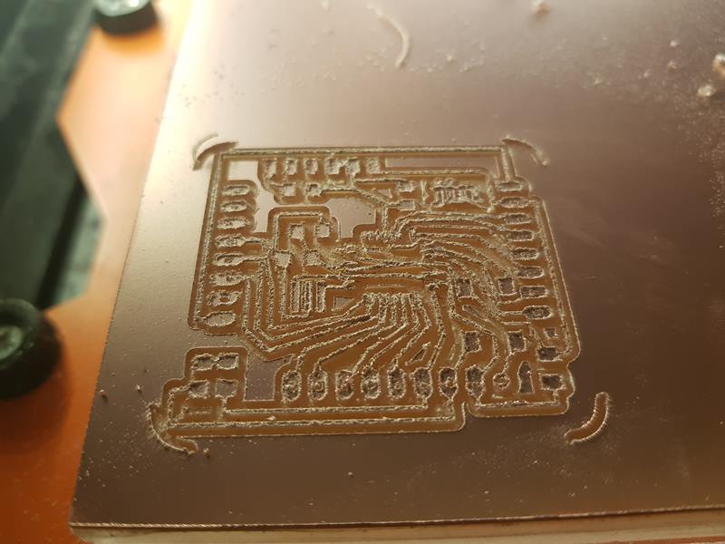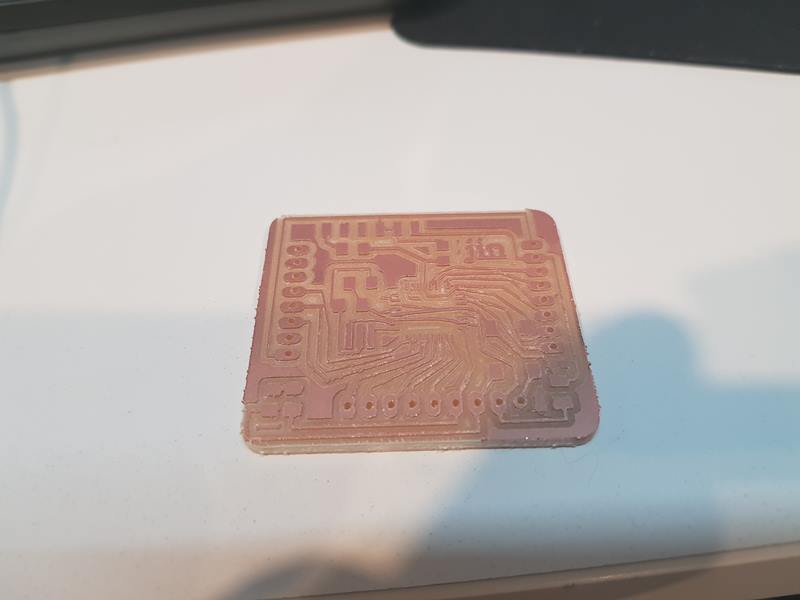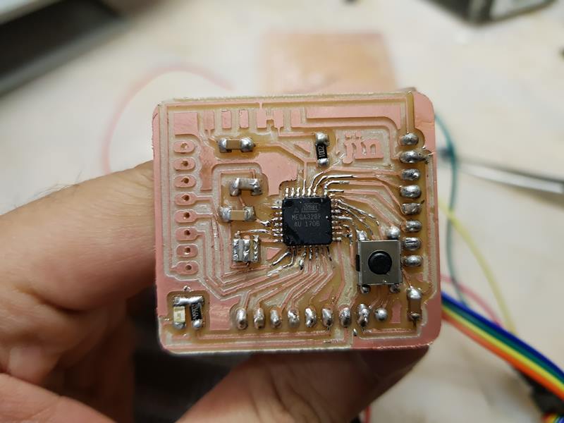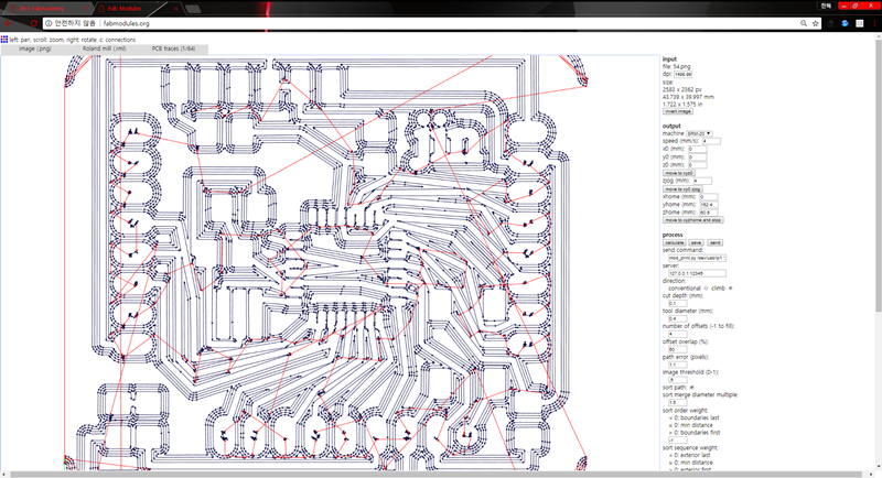 My final PCB design. Available for download below. A toolpath was created in fabmodules. I cut a trace with Roland. Finally, Outline was cut as well. You should choose components without making any mistakes. If you don't do it well, the board won't work. I finally completed my CPR board. I tried my CP Rband. The soldering caused problems and was repaired again. It worked well as a result. I tried connecting the Neopixels and the acceleration sensor from my CPR board.