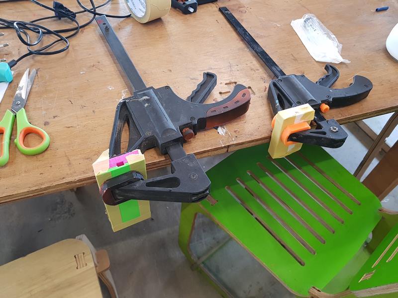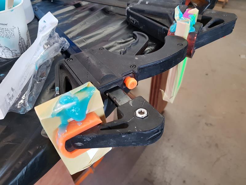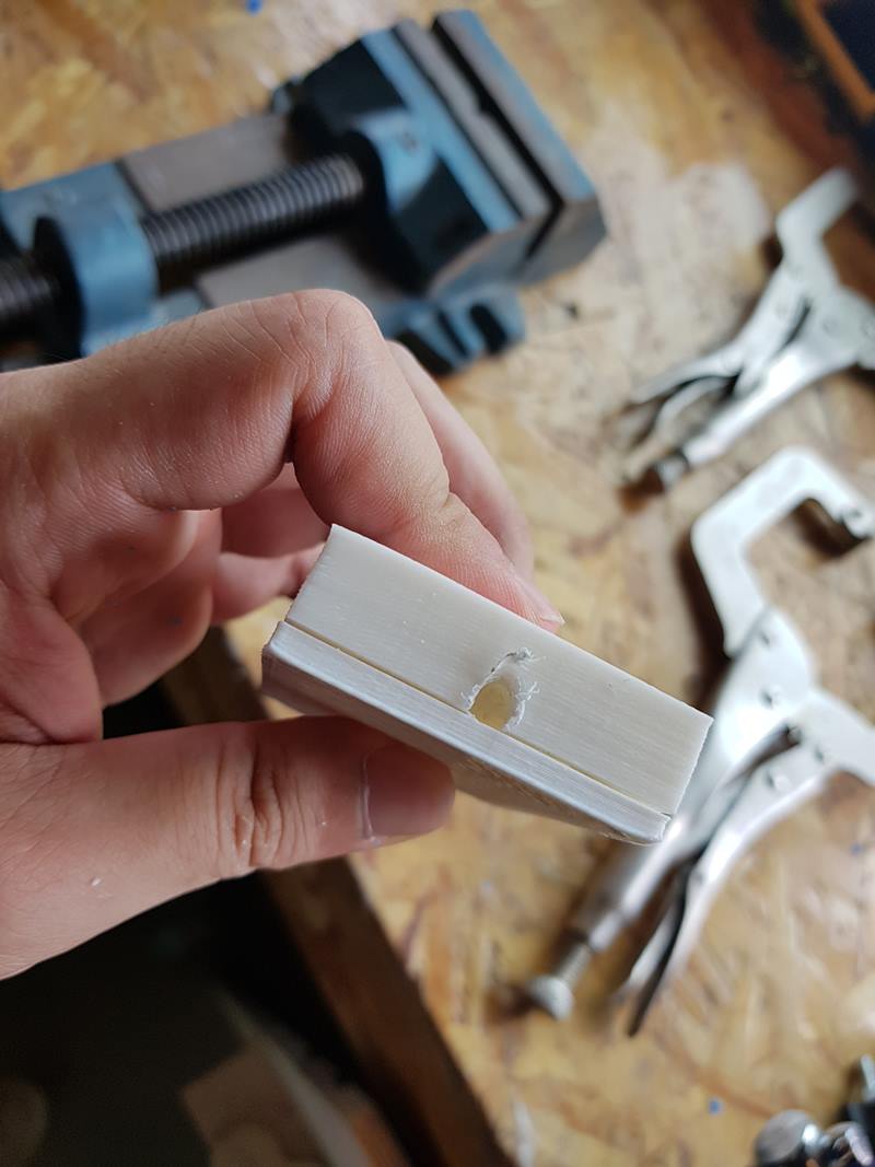 So I used an electric drill to make an entrance. Don`t make the hole too large. Make it smaller. I used clamp it again. But there is a problem. There was a lot of gap between the 3D printed materials that could leak out silicon.