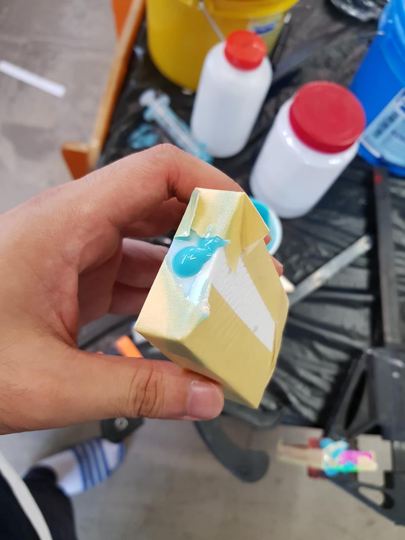 Because there is a hole for air to come out as silicon enters. Silicon was injected through the syringe. I waited for 2 hours after finishing my work. Open the finished mouse carefully with a knife. The casting went well. Using Moldstar 16 Fast, I was able to create a band of smooth. So I made two bands.