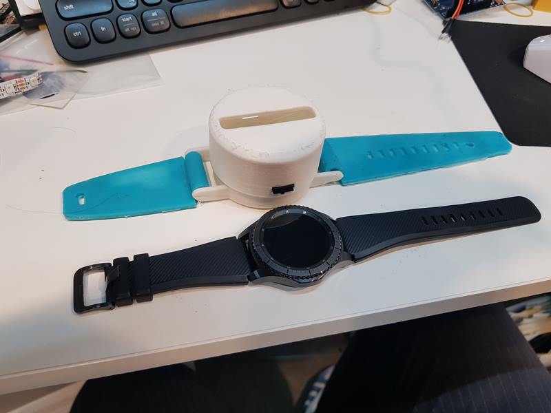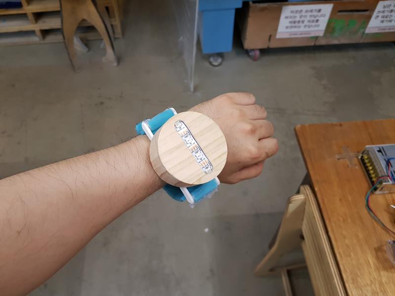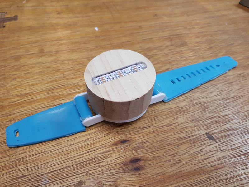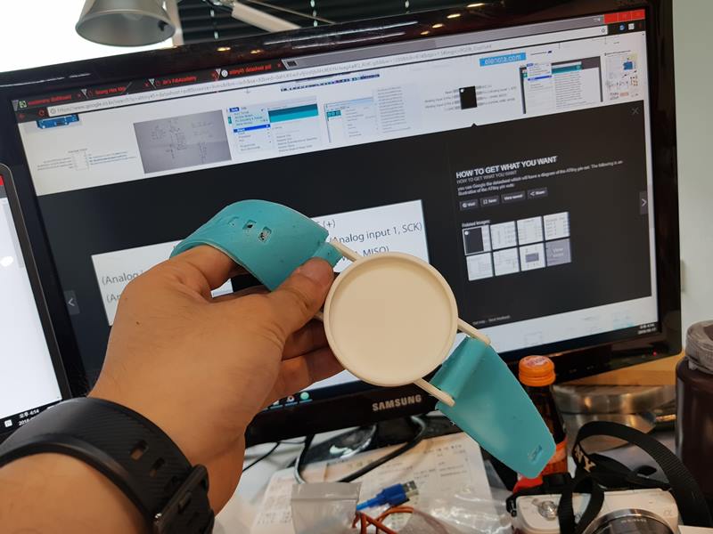I made a location hole for the Neo pixels, switches and charging modules on top of the appearance. The base of the appearance is where the cpr board is located. And I designed the band to hold. And I printed it on the 3D printer.