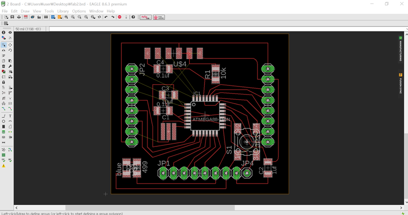 Button SMD The data sheet on the atmaga 328 provides information on where the acceleration sensor and the Neo pixel will be located. Design CPR borad in eaglecad. I designed it in a boat.