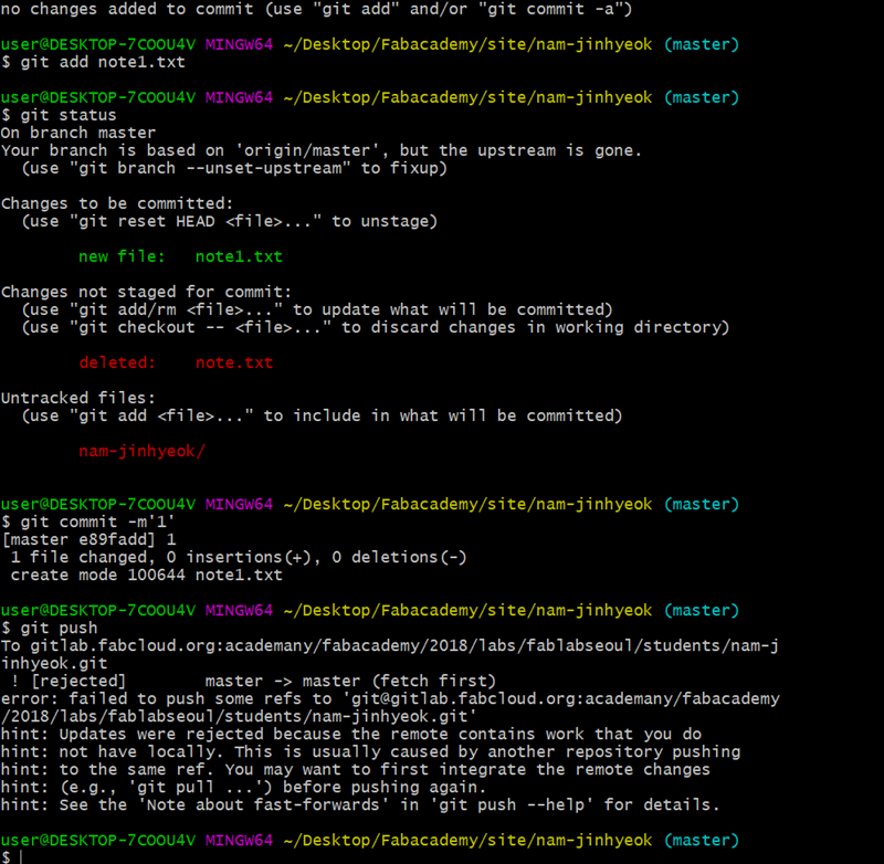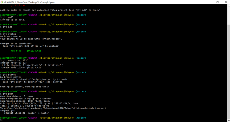 I did not put git add `.` Dot when I did git add. Because of this, I kept failing. The computer language is very sensitive, so be careful.