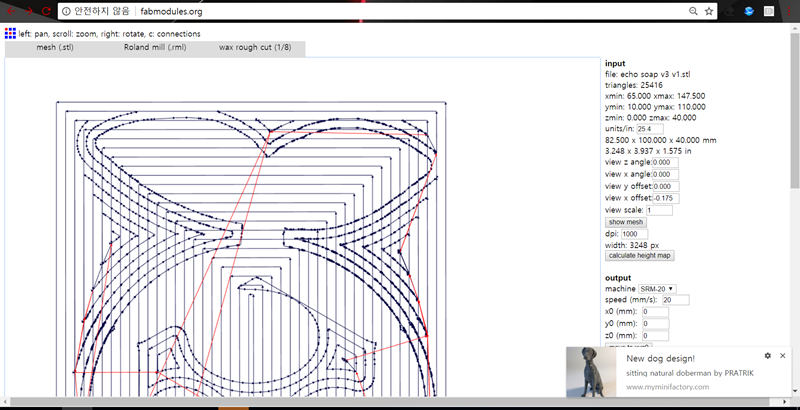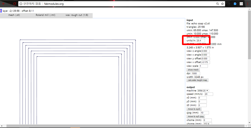 9. Set the output machine. (SRM-20) (speed is cut to 20 if the wax is smooth).