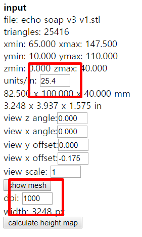 6. Click calculate height map to calculate. (The color of the image should change on the screen.)