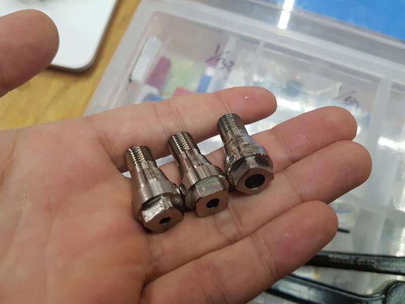 And when you cut the wax, you have to check the size by air cut. Without aircut, cutting can fail.