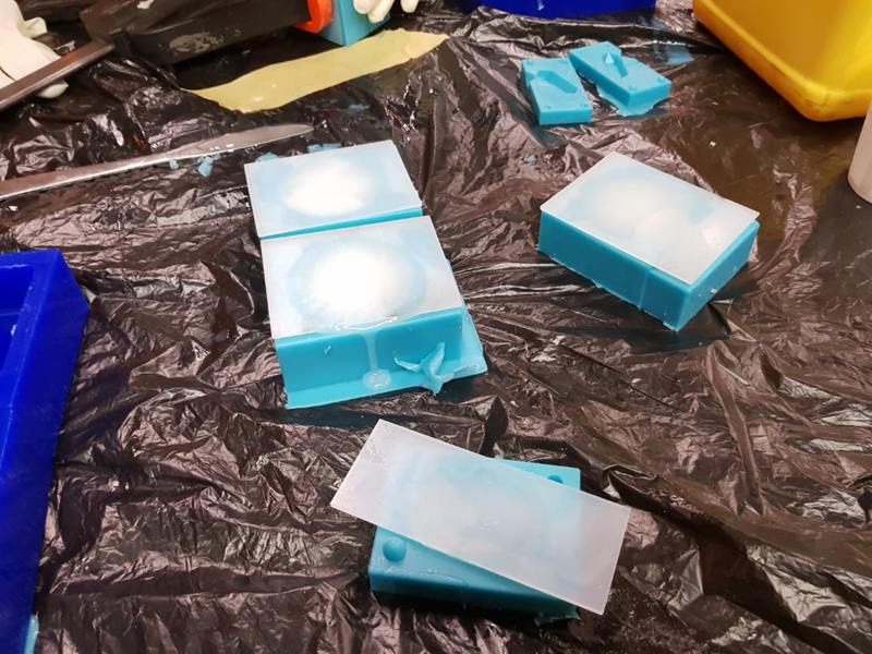 We used `Smooth-on` `Mold star 16Fast` as a molding material.