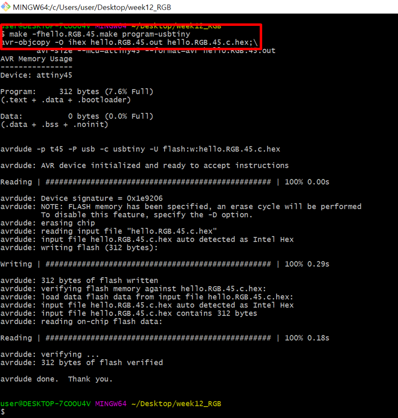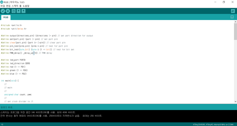 Enter make - f( file name )program - usbtiny. I succeeded in getting up. This time, I changed the color and delay in the Aduino IDE and tried to code.