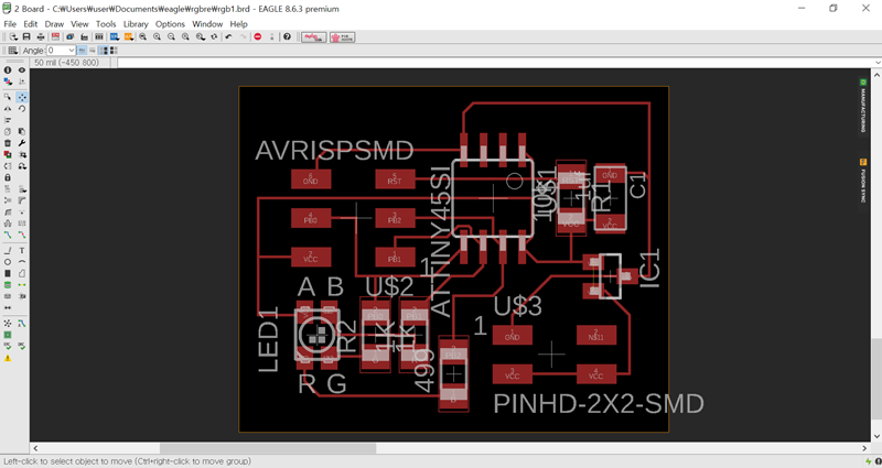 I have not spent much time on Eaglecad, so I spent a lot of time designing RGB.