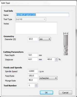 7. Set the Pass Depth, Rpm, and Feedrate.