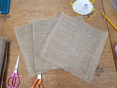 I cut the burlap in a square shape and grasped the hardness by overlapping 1, 2, 3, 4, and 5 pieces.