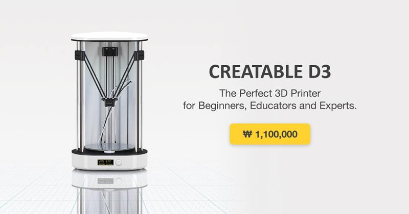 The 3D printer we have at Fablab Seoul is called 'Creatable D3'. D3 is made by a company called 'Ateamvenctures'.