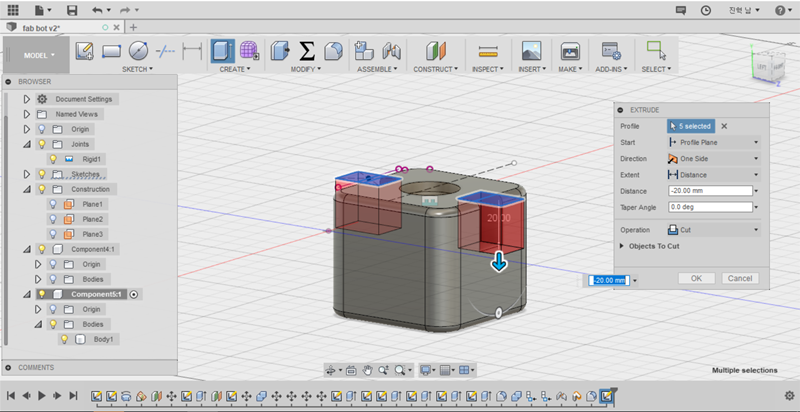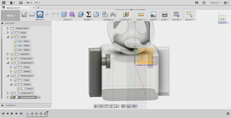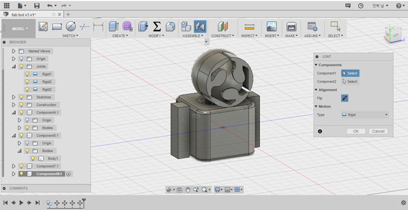 So I made support for the joint part in fusion360. I saw Fabbot in my role as support. Fabbot is a joint robot I made.