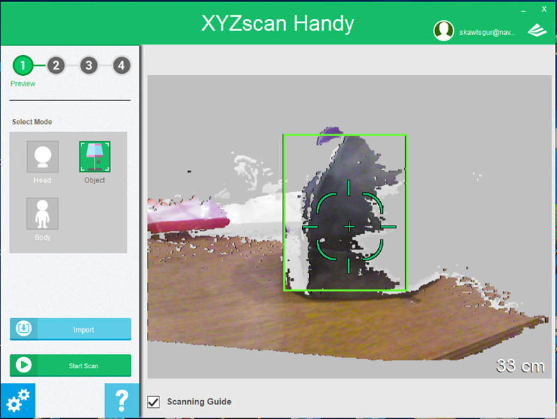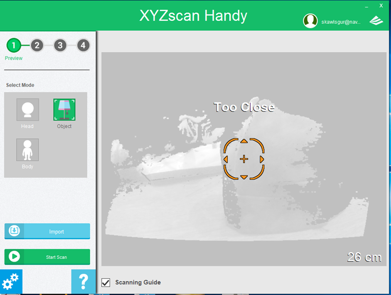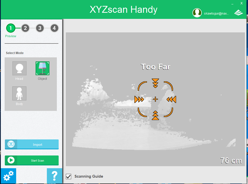 I determined the distance at which I could scan well from 300 mm to 400 mm.