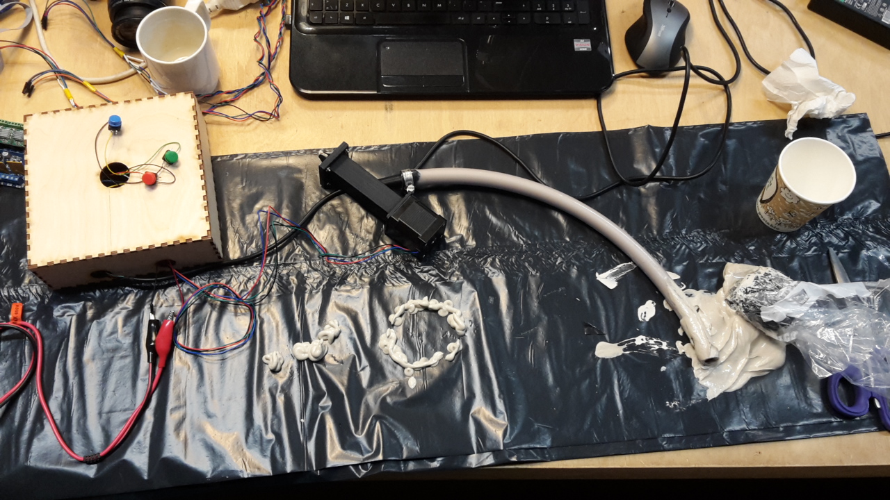Inside the box I have the clay board connected to a Fabduino board.