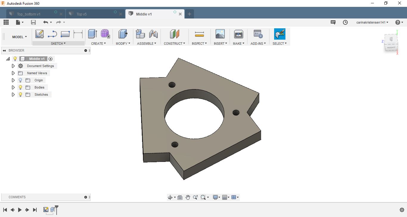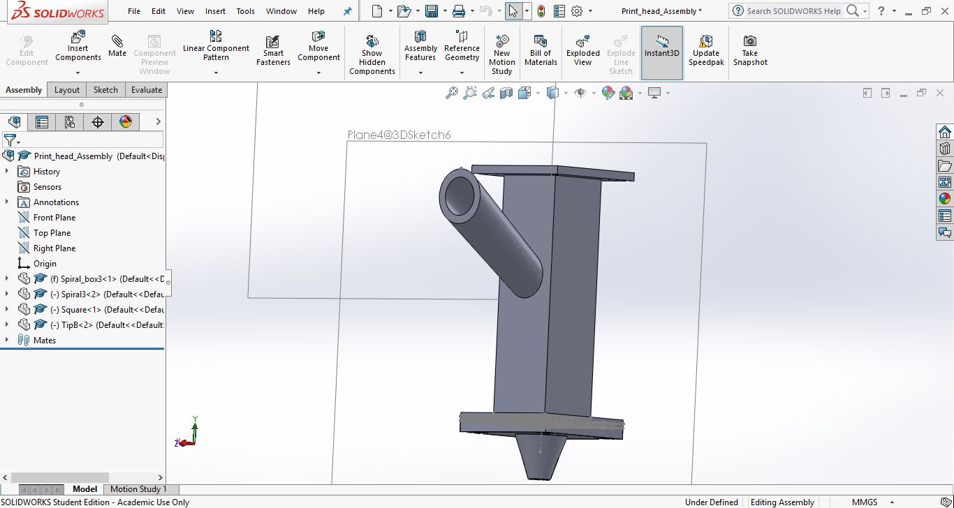 The extruder is designed in Solidworks as seen further down on the page. It is then printed on an Ultimaker 2 and Ultimaker 2+.