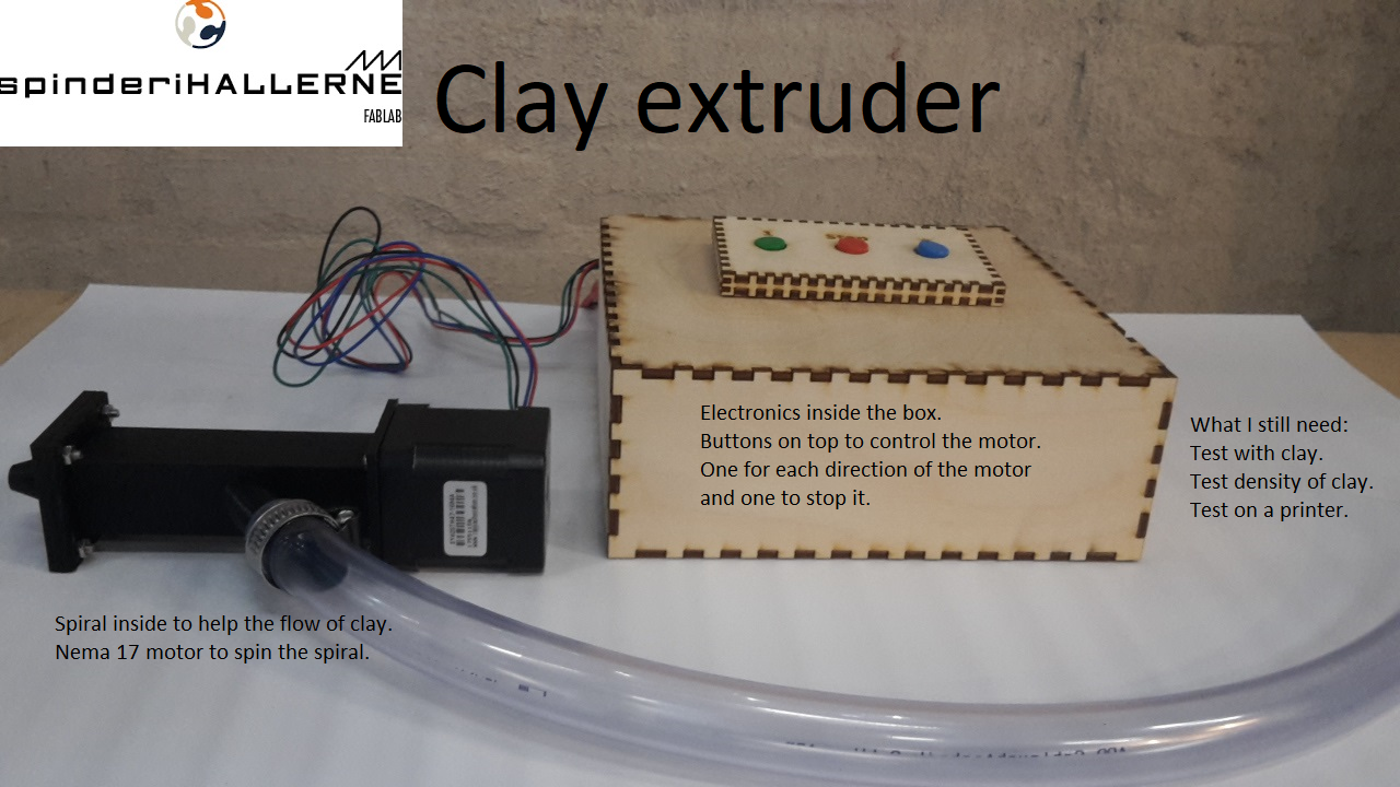 I would like to use the clay extruder afterwards to make designs and afterwards experimenting with firing of the clay and glazes.
