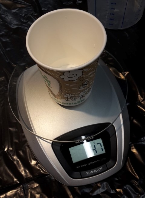 First I used water to measure the ca. volume of my mold. I filled my mold up with as much water as I could. Then poured the water in a cup and measured this (minus the weight of the cup). In this way I could see how many grams I needed. Of course the rubber has a different density than water, but this worked for me because my mold is pretty small.