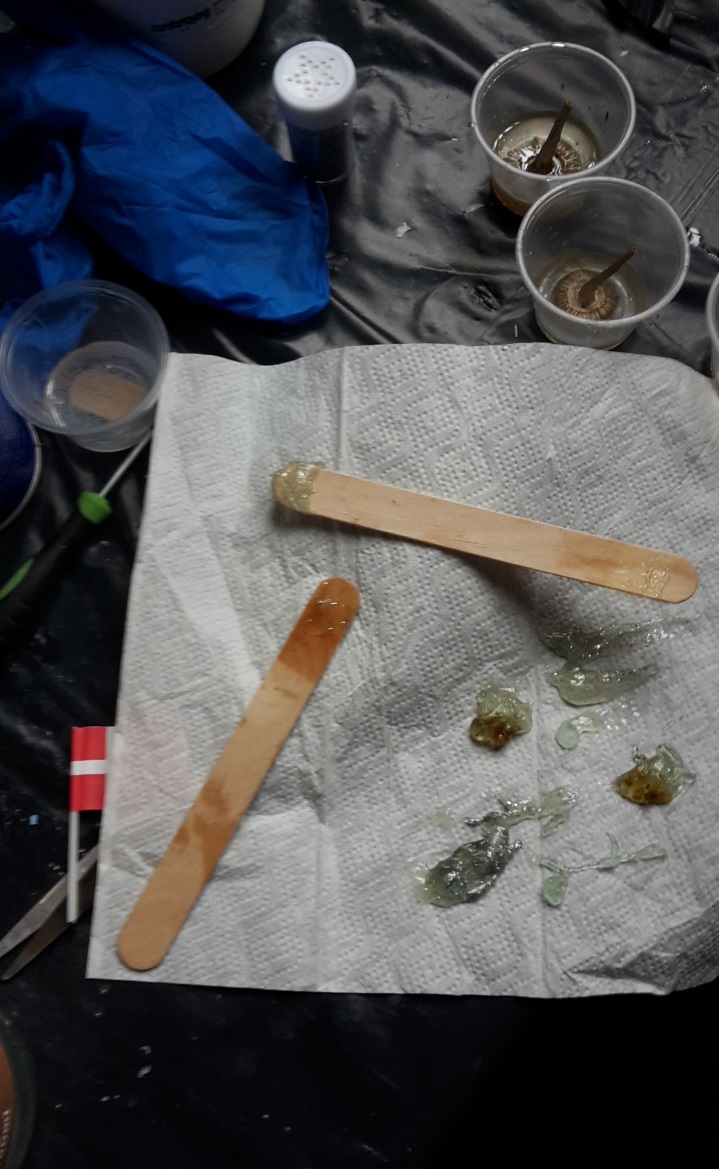 When mixing for the first test we had some trouble with getting the hardener out and all of a sutton there was a lot coming out. It looked like there was something stuck in the tube which is understandable because the resin and hardener has been open for a while.