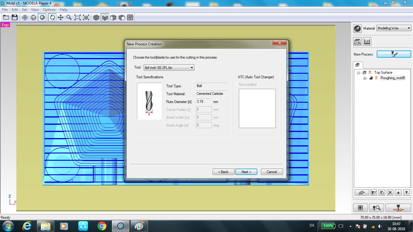Picture 3: I can here choose how I want the paths. How the machine is cutting. But for my mold the most effecient would be "Contour Lines".