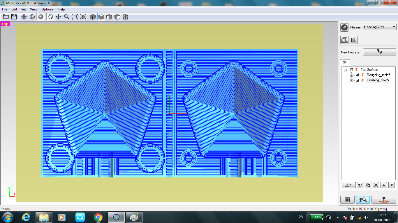 Because we didn't have much time on the machine I had to make a small mold and could not make two sided mold.