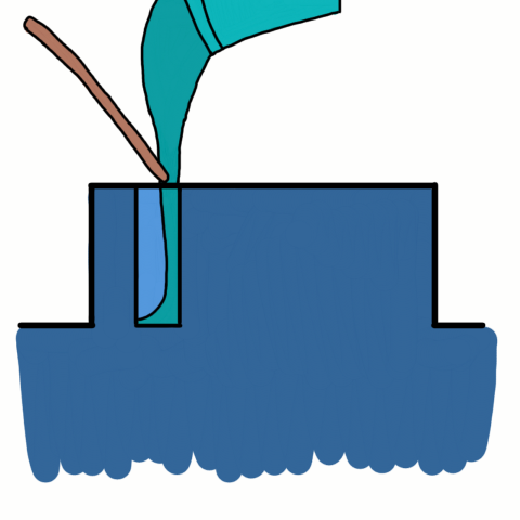 After mixing the two components together (blue and green) and there are no lines of colour, you can begin to pour it in your mold. Because I’m making earrings, I needed to fill a lot of small holes. These holes are really hard to fill with the rubber because the mixture needs to slowly run along the wall of the hole to fill it all up. Otherwise it could trap an air bubble on the bottom and then the mold(2) would be incomplete. I cut off a piece from the stiring stick so I had a thinner stick to control the flow of the rubber (see picture).