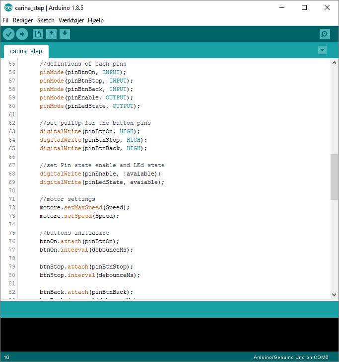 On line 7 it is here defined which of the pins on the H-bridge that the motor is connected to.