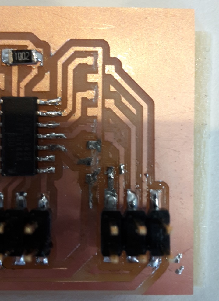 What I didn't nottice before I milled the board was that the row on the right was still connected.