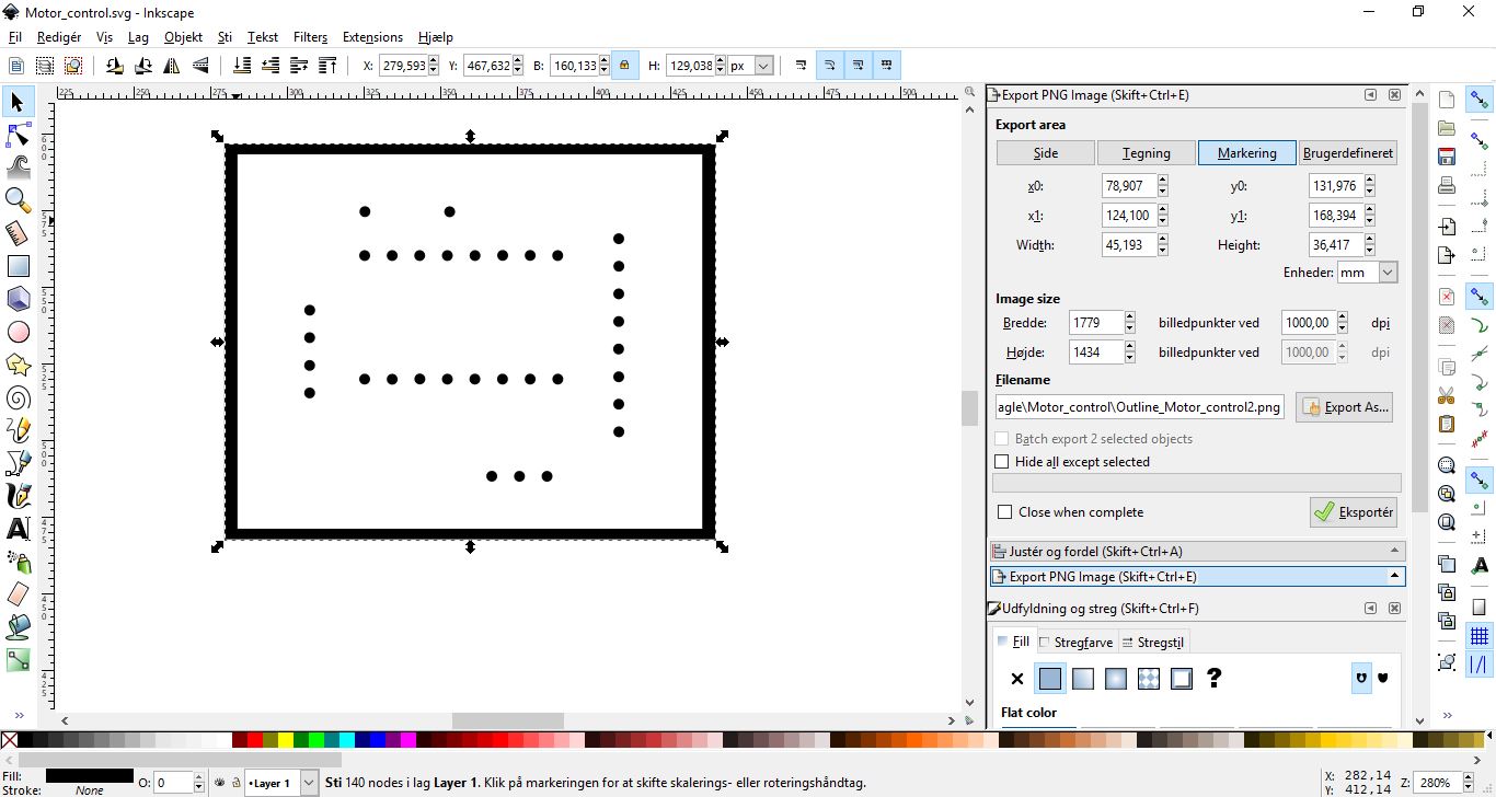 I used Inkscape to make the holes and the frame in the same file. First I made the frame so it would be easier to keep the holes in the same place.