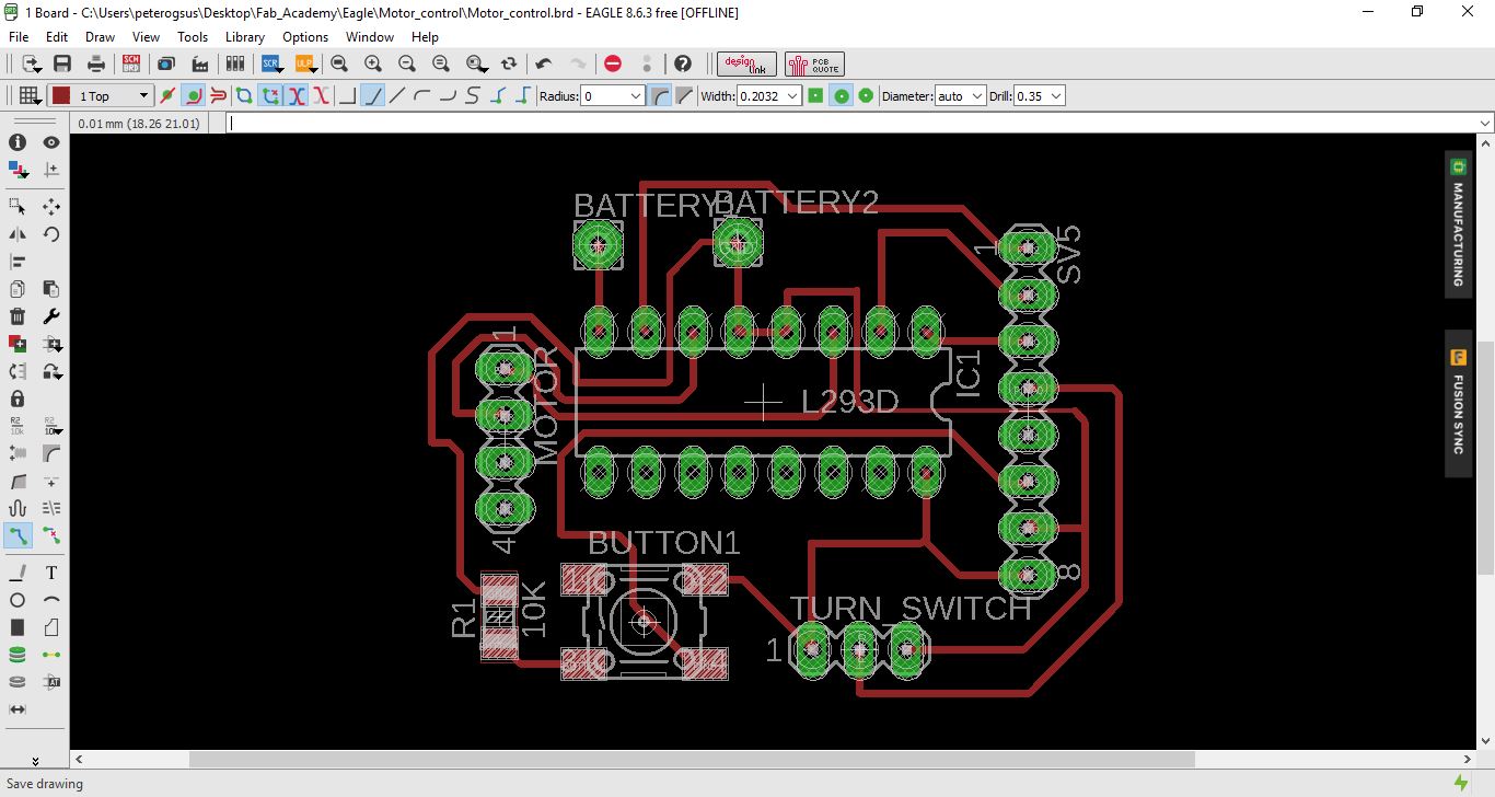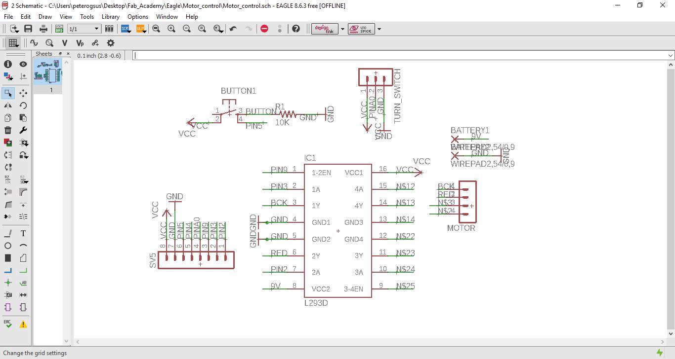 I made some changes and is now using the L293D for the motor. This was in the library so I made the traces and connections.