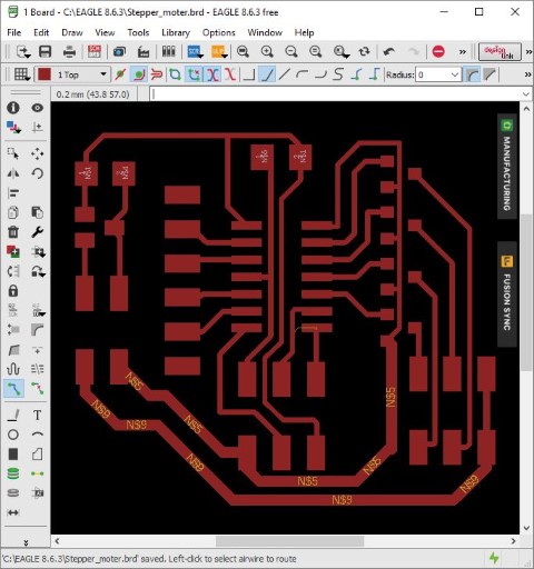 I started with making the design for an H bridge but had to figure out the distance between the legs. This was a bit hard and I failed in the first try. I also did something wrong with the outline and the holes, so the holes were misplaced.